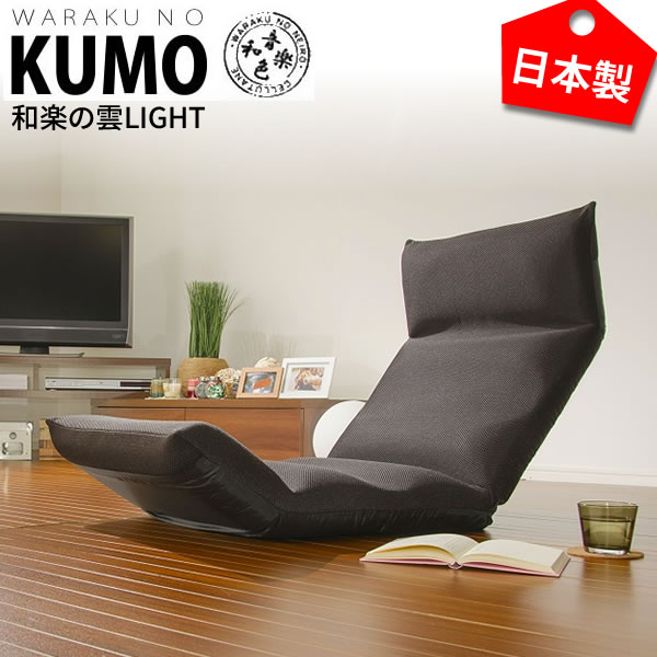 座椅子 和楽の雲LIGHT リクライニング付きチェアー上 ブラック リクライニングチェアー フット上向き シンプル 日本製