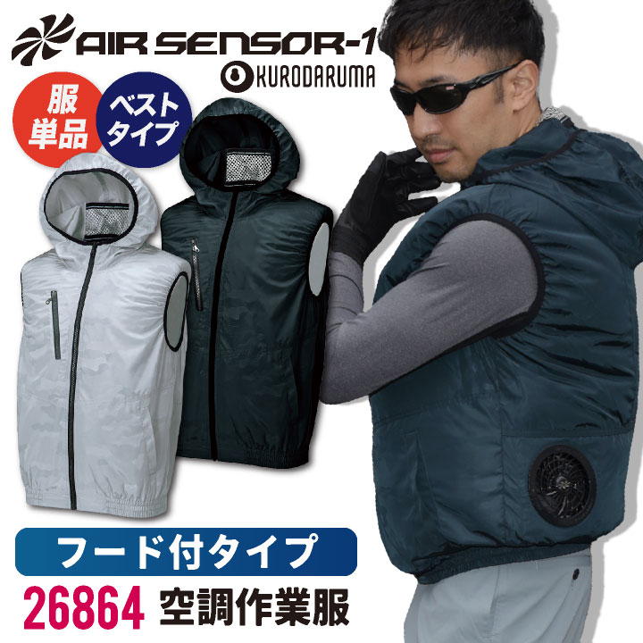 空調服 COOL UNIFORM クロダルマ エアーセンサー1 フード付ベスト (服単品) 商品の特長 クロダルマのAIR SENSOR-1。